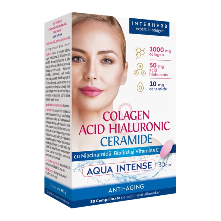 Interherb Colagen si Acid Hialuronic si Ceramide Aqua Intense 30 comprimate Cumpărături pe site-ul helti.ro >> Preparat complex cu peptide…